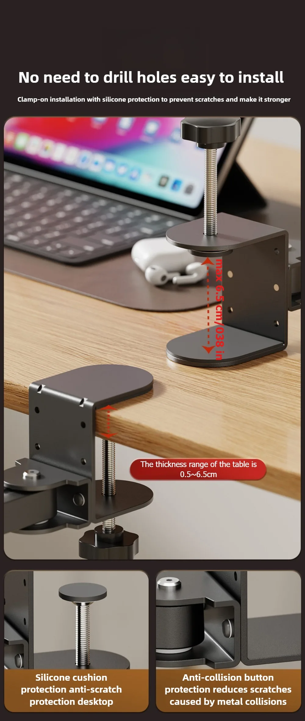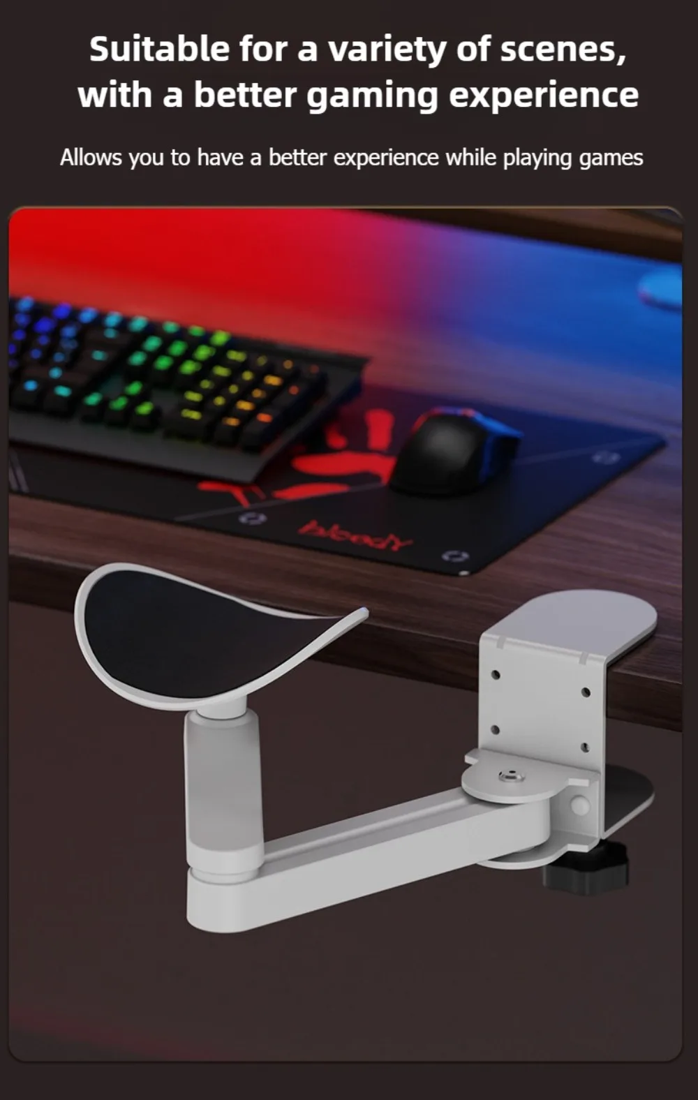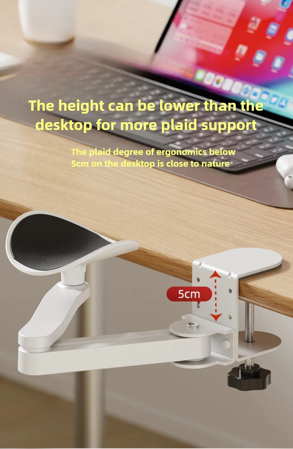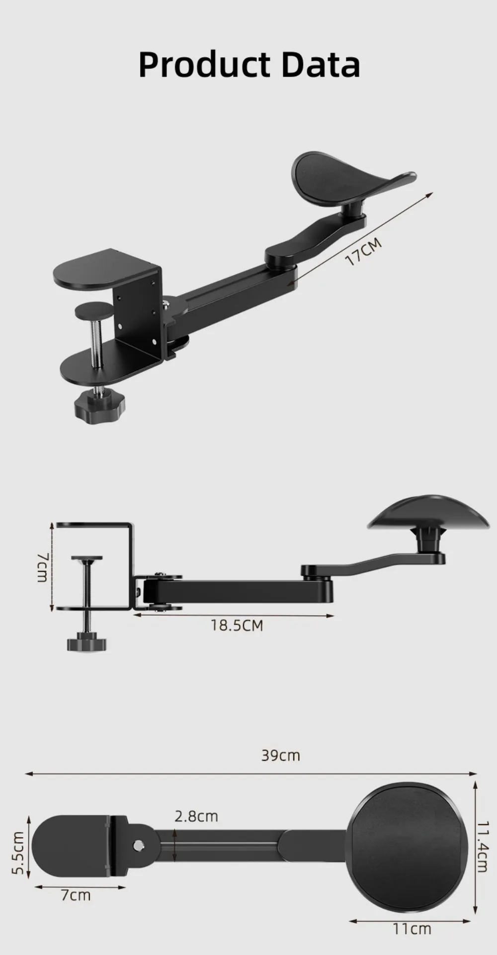 1:Help sitting in right position ,alleviate the aches And pains of shoulder.2: Aluminum material make it durable.3:This elbow stand can be fixed on the desk from 0-60mm thickness.4.Flexible and adjustable freely.5.Ergonomic design and easy for fixing.6.Can adjustable high to make sure suit for your arm.